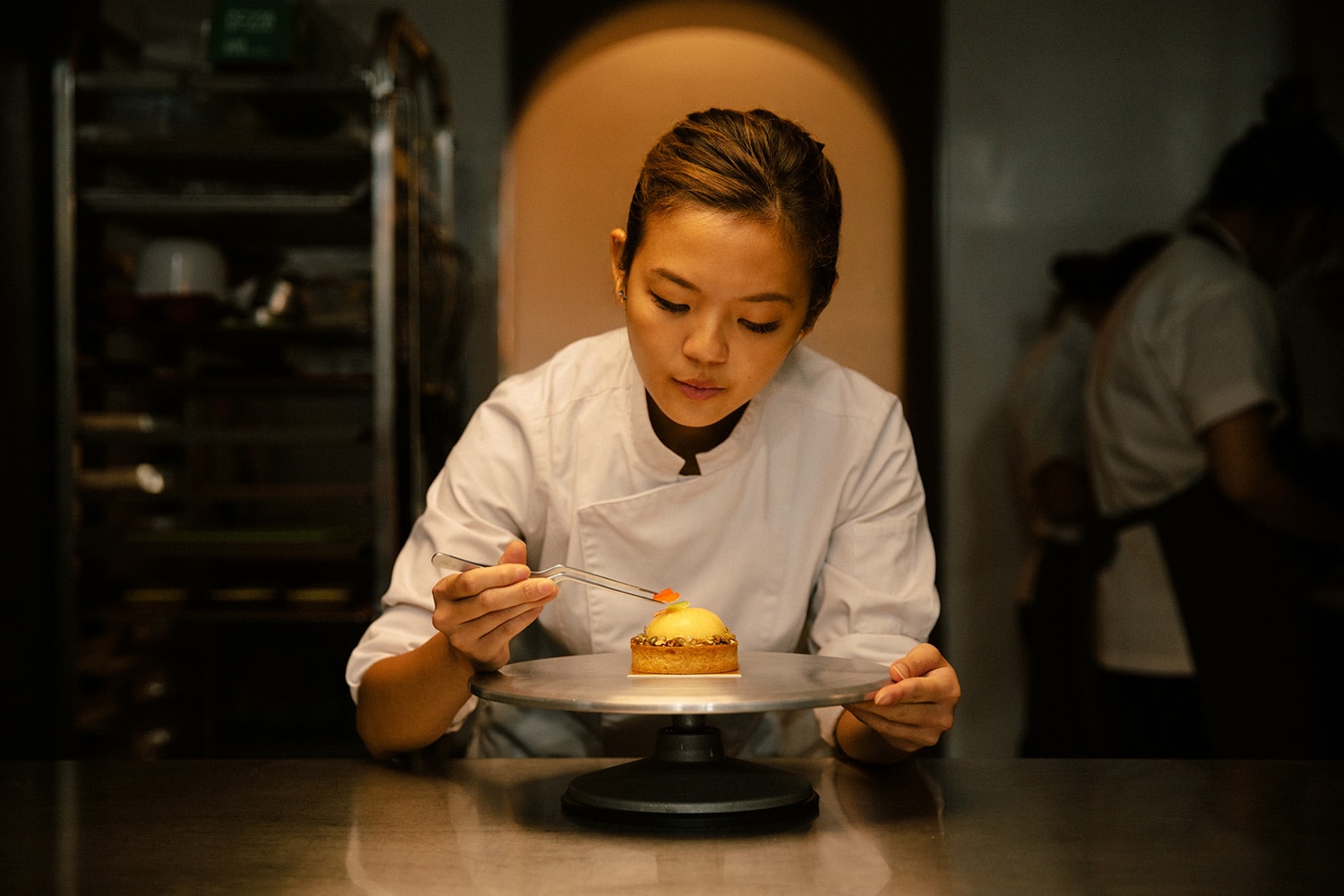 With no formal culinary training, she first put on her chef’s hat in the two Michelin-starred Les Amis. It was there that she cut her teeth under the mentorship of renowned pastry chef Cheryl Koh, whom she subsequently worked with to launch Tarte by Cheryl Koh. Maxine then joined the ranks of three Michelin-starred Joël Robuchon Restaurant, and eventually became the Head Pastry Chef for Robuchon alumni Vianney Massot’s restaurant. There, she created some of her most well-loved signature desserts such as the refreshingly light “Beehive”.