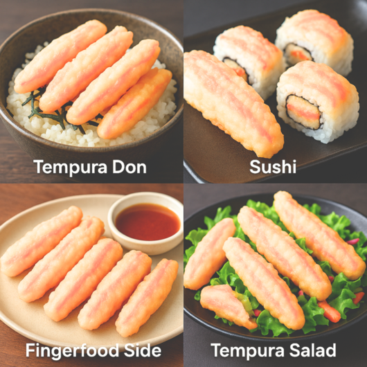 Our Tempura Kani Kamaboko (battered imitation crab stick) offers chefs a versatile, ready-to-use ingredient that delivers both convenience and authentic Japanese flair. With its crisp golden coating and savory crab flavor, it can elevate menus in countless ways—served in tempura dons, rolled into sushi, featured in salads, or plated as an easy side dish. Perfect for busy kitchens, it saves prep time while providing consistent quality and an attractive presentation that appeals to diners..
