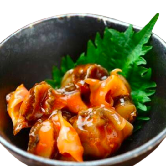 Chefs incorporate this seasoned top shell into various dishes, often as a spicy appetizer or a side dish in Japanese restaurants, where it adds a bold flavor and unique texture contrast, and it's also used as an ingredient in salads, sushi, and other seafood-based dishes, providing a distinctive taste experience.